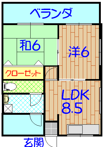 | 間取り | 2LDK(和6 洋6 LDK8.5) | 駐車場 | 有(敷地内) 1台 |