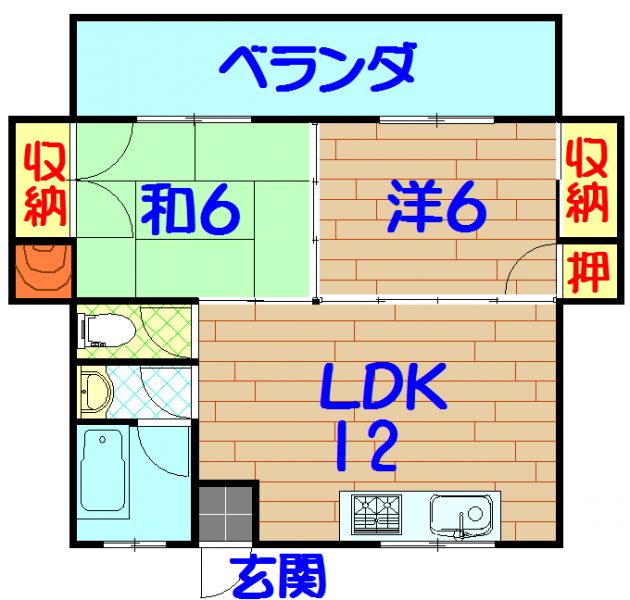 間取り2LDK(洋6 和6 LDK12) 駐車場有(空有り/敷地内) 2台(縦列 ※普・軽)