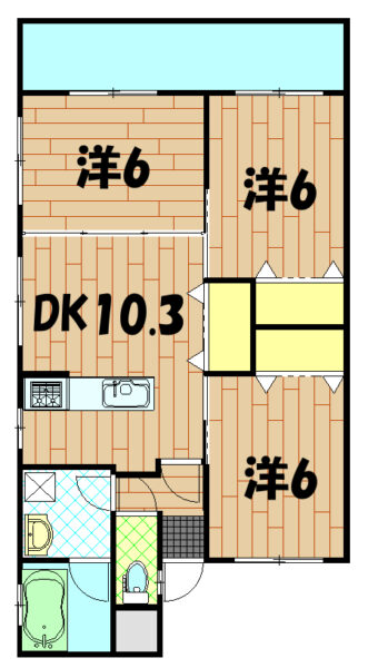 | 間取り | 3LDK(洋6・6・6 LDK10.3) | 駐車場 | 有(敷地内) 2台(並列駐車) |