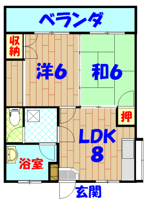 | 間取り | 2LDK(洋6 和6 LDK8) | 駐車場 | 有(敷地内) 1台 |