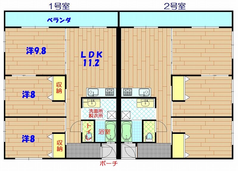 | 間取り | 3LDK(洋8・8・9.8帖 LDK11.2帖) | 駐車場 | 有(空有り/敷地内) 1台 2,200円/月 |