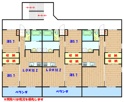 間取り | 2LDK(洋5.7・5.7 LDK10.2) | 駐車場 | 有(空有り/敷地内) 2台(普通車・軽自動車指定 縦列) |