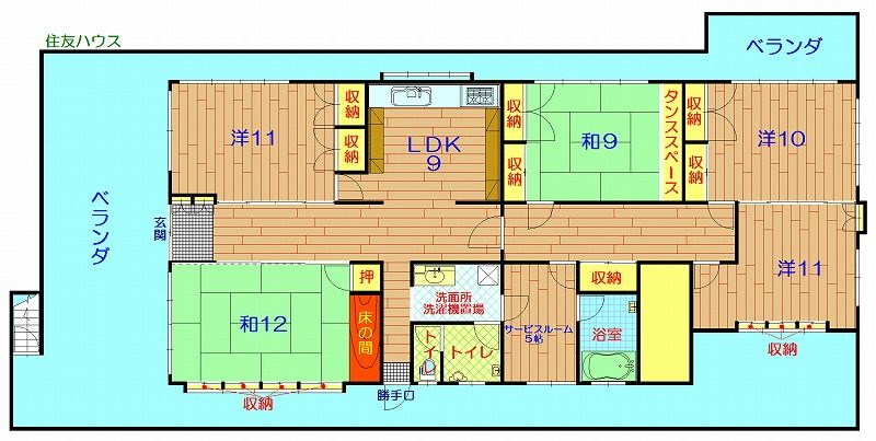 和12/9畳 洋11/11/10帖 サービスルーム5帖 LDK9帖 | 有(2台) | 2000年(25年) | 空き | 60.3万円 |