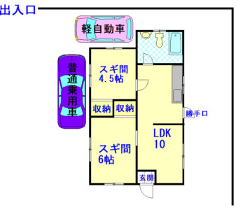 | 間取り | 2LDK(スギ4.5・6 LDK10) | 駐車場 | 有(空有り/敷地内) 2台(車種制限有り) |