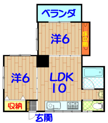 | 間取り | 2LDK(洋6 洋6 LDK10) | 駐車場 | 有(空有り/敷地内) 1台(高さ制限1.8m) |