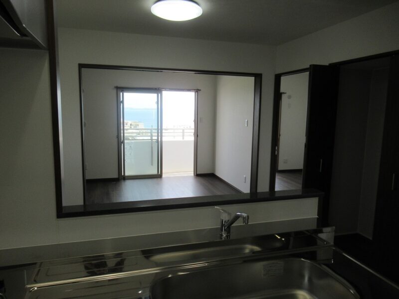 ビューテラスIKEHARA(角部屋) 駐車場1台無料 駐車場2台無料 2階以上 バス・トイレ別 エアコン 浴槽 室内洗濯機置場 ネット無料 ガス衣類乾燥機 対面キッチン 海が見える オール洋間 礼金なし 角部屋
