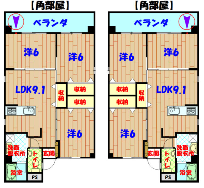| 間取り | 3LDK(洋6・6・6 LKD9.1) | 駐車場 | 有(敷地内) 2台 |